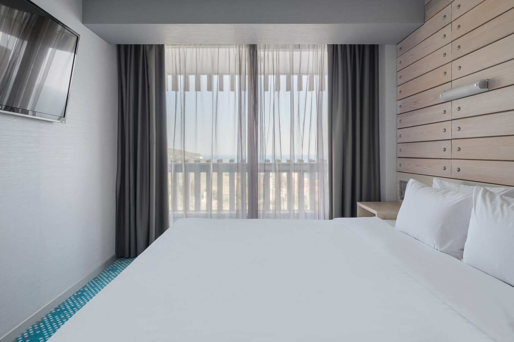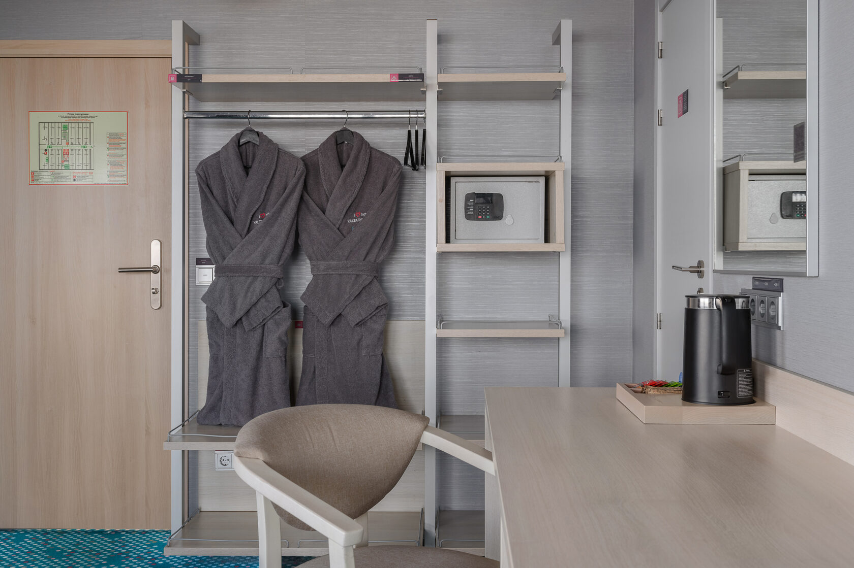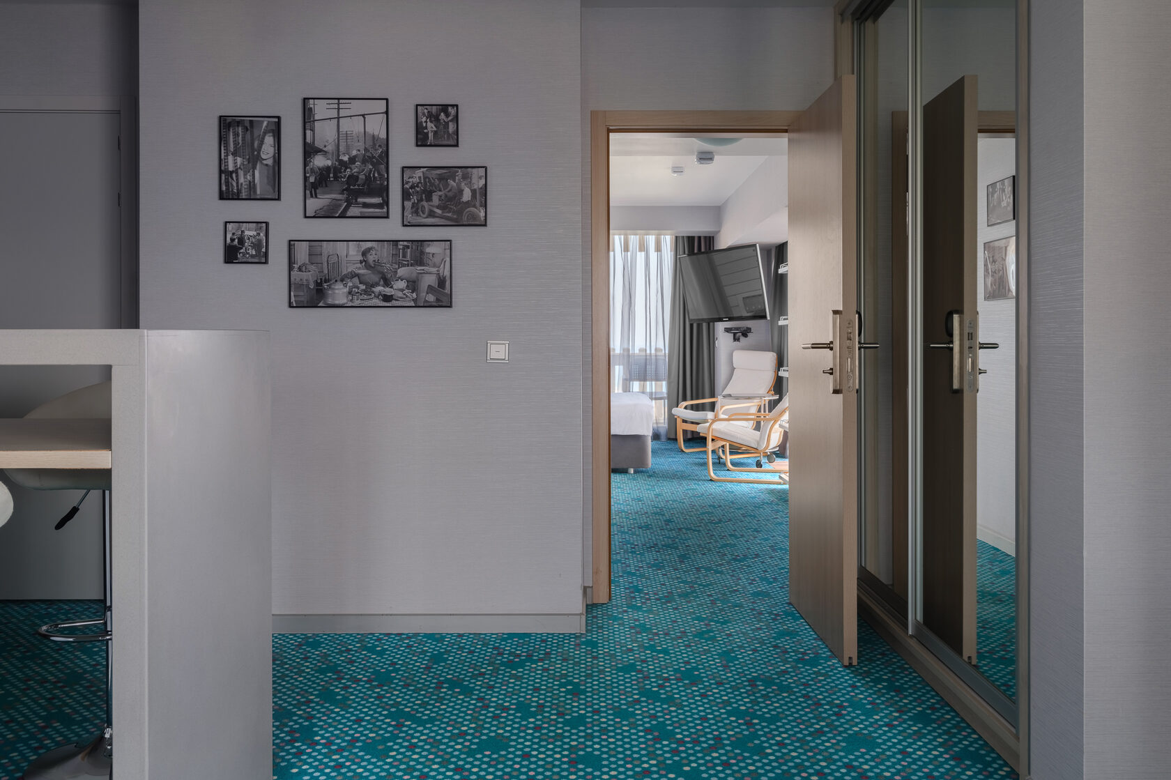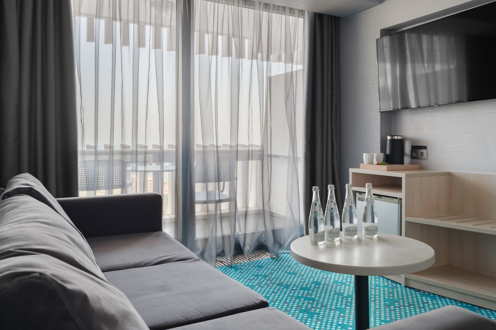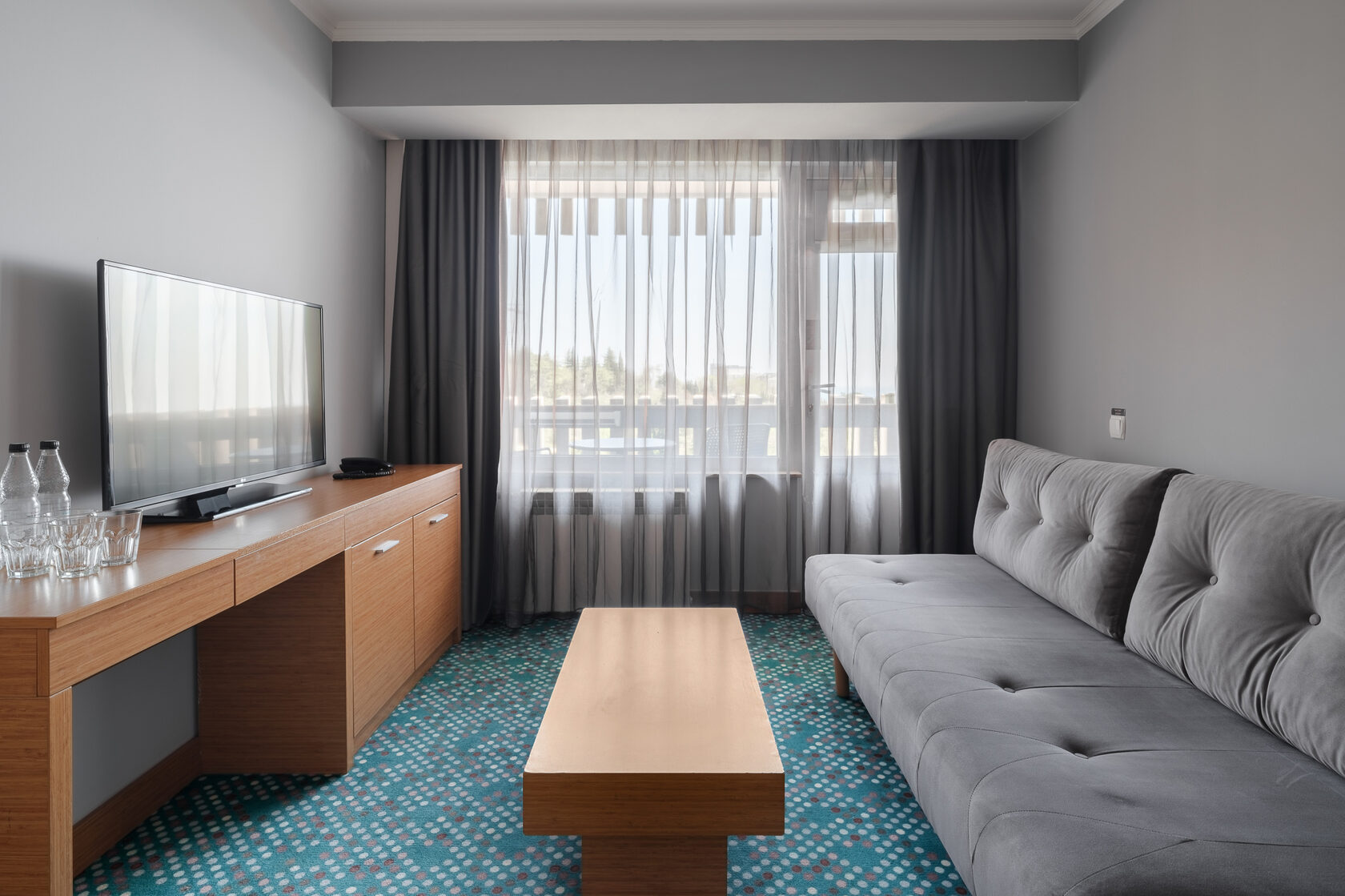 "Президентский" - Премиальный номер с панорамным видом на Черное море и горы. Предусмотрены две комнаты с двуспальными кроватями (King Size), гостиная с мягким диваном, зона отдыха, кухня и балкон с шезлонгами. К вашим услугам мини-бар, кондиционер, Wi-Fi, телевидение, холодильник, сейф, чайная станция, кофемашина, фен, две ванные комнаты с косметическими принадлежностями. Площадь 75 м².