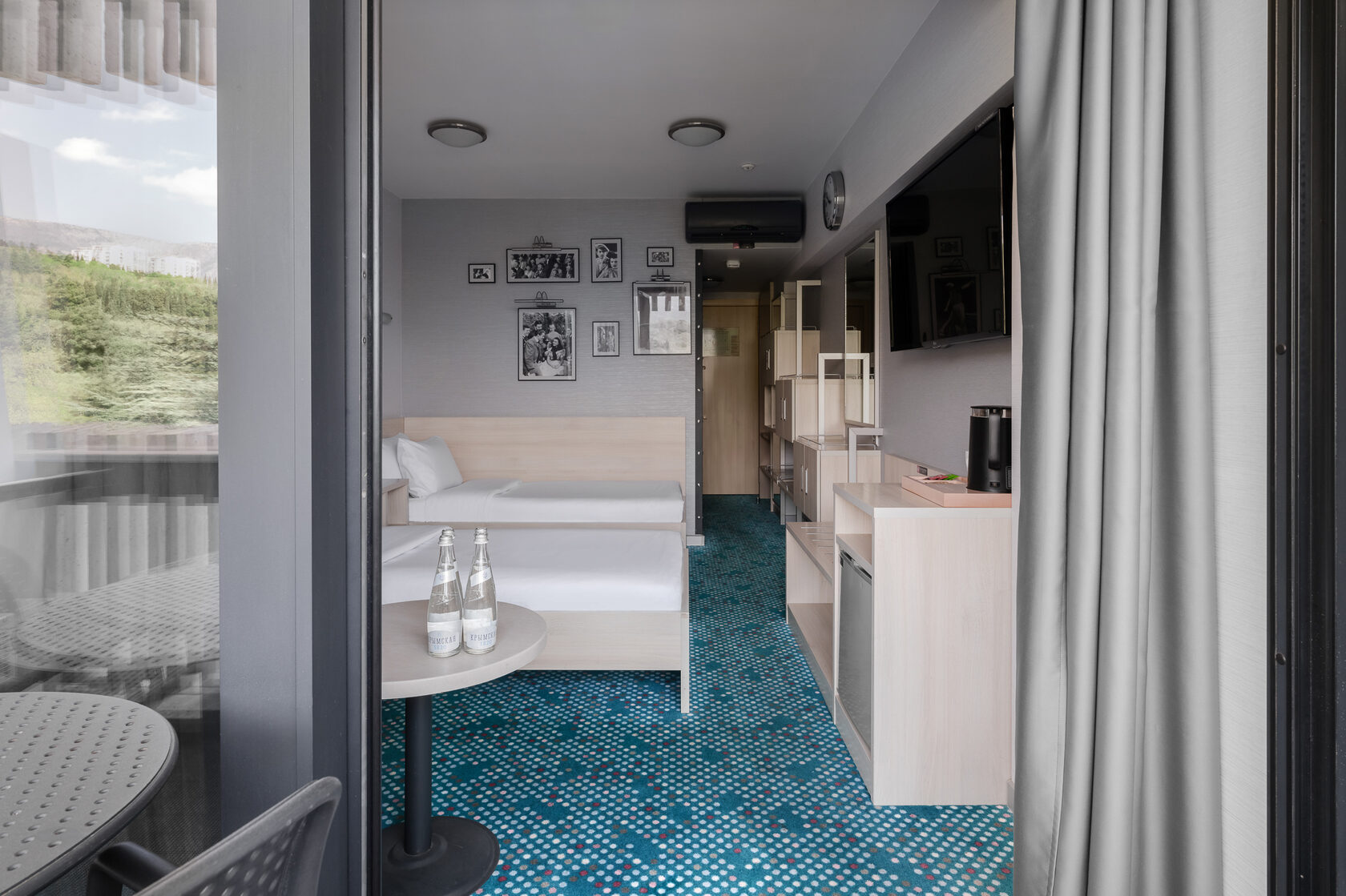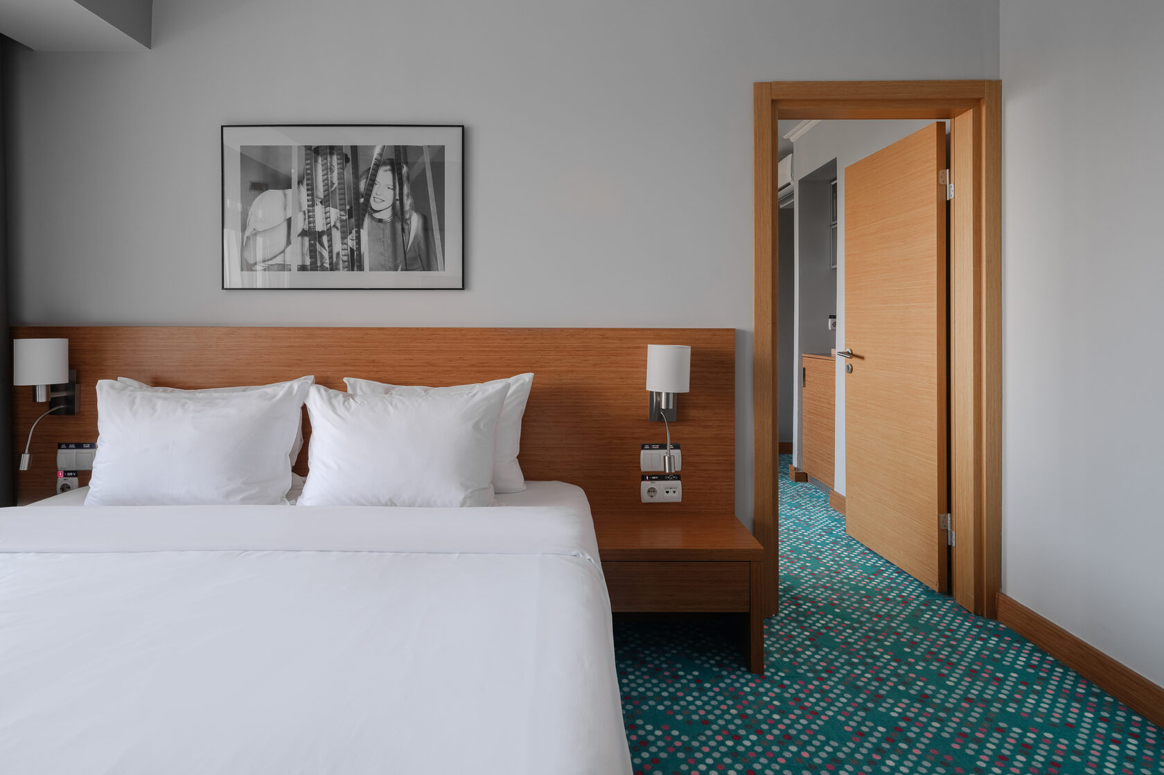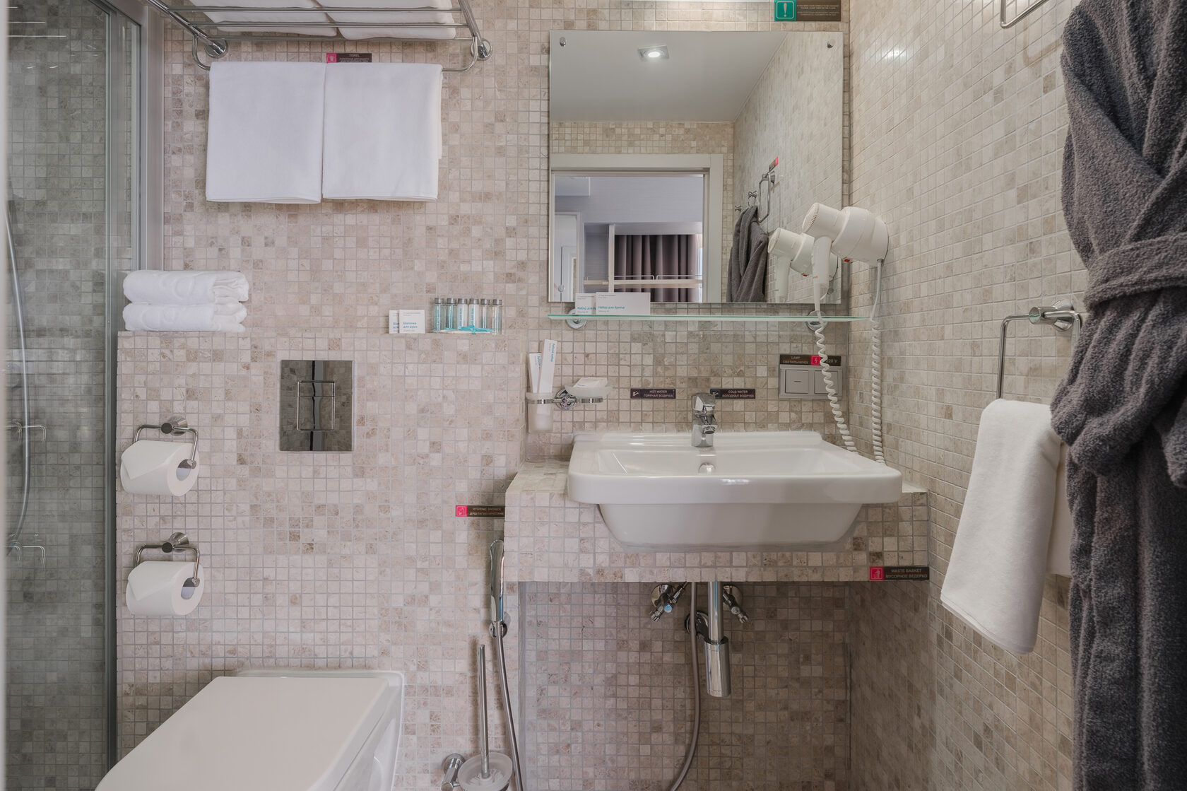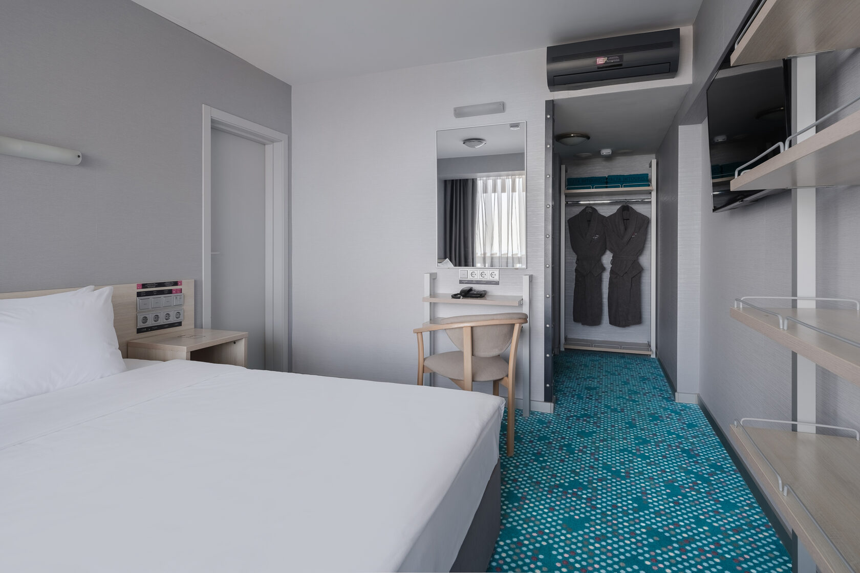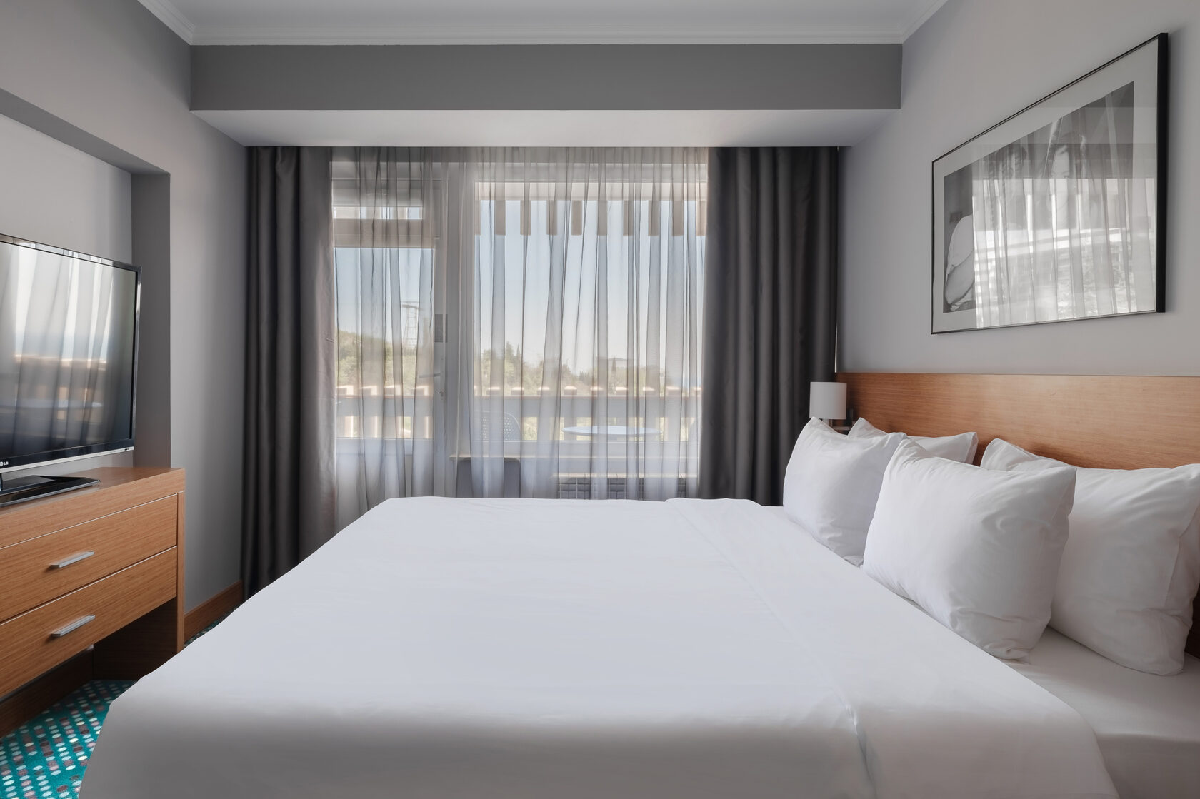 "Президентский" - Премиальный номер с панорамным видом на Черное море и горы. Предусмотрены две комнаты с двуспальными кроватями (King Size), гостиная с мягким диваном, зона отдыха, кухня и балкон с шезлонгами. К вашим услугам мини-бар, кондиционер, Wi-Fi, телевидение, холодильник, сейф, чайная станция, кофемашина, фен, две ванные комнаты с косметическими принадлежностями. Площадь 75 м².